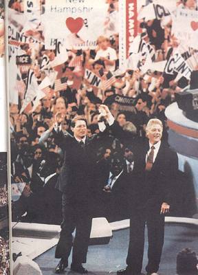 克林顿与竞选伙伴、原田纳西州州长阿-戈尔共庆胜利