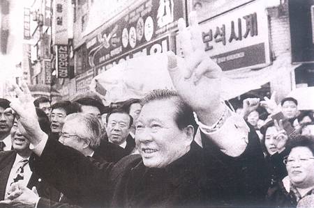 1997年12月19日,韩国中央选举管理委员会正式公布总统选举结果,新政治国民会议的总统候选人金大中以40.4% 的得票率,战胜大国家党候选人李会昌和国民新党候选人李仁济,当选韩国第15届总统。金大中1925年12月出生于韩国全罗南道。60年代起他开始从政,曾6次当选国会议员,3次竞选总统均遭失败。在朴正熙、全斗焕执政时期,金大中曾遭绑架、软禁并被捕入狱。1995年,他重返政坛,创建新政治国民会议,任总裁,并于1997年再度竞选总统。