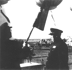图为陈毅向军事学院院长刘伯承授旗