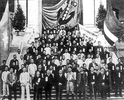 海员工人代表合影,前排右三为罢工领导人之一苏兆征