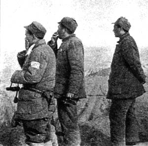 青化砭战役的前沿阵地指挥员彭德怀(左二)、习仲勋(左三)