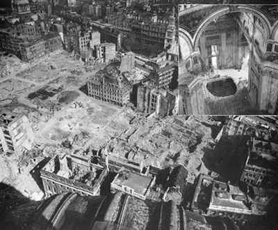 德机猛烈空袭后的圣保罗大教堂及周围地区