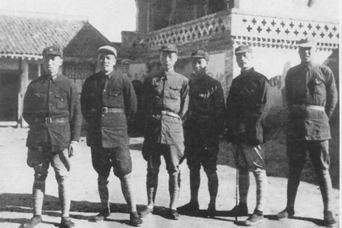 1936年,聂荣臻(左三)、左权(左一)等红军部分将领合影。5月至7月,聂荣臻等率红一军团参加“西征”,给马鸿逵、马鸿宾部以沉重打击。