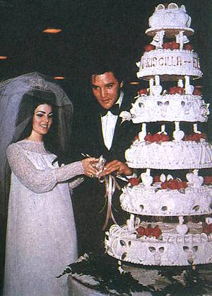 1967年5月1日,当摇滚舞王、歌手兼电影演员“猫王”埃尔维斯-普雷斯利低声唱着《温柔地爱我》时,一种叹息般的大合唱可以从全世界女性的嗓子里听到。在拉斯维加斯,这位千百万人崇拜的偶像答应将他那温柔和忠实的爱给予与他相处很久的女友普里希拉-比柳。他们当着14位朋友的面立下婚誓,然后招待一百位客人共进香槟早餐。普雷斯利,32岁,身穿小夜礼服;而他的新娘,21岁,穿着白色薄绸长袍。袍上饰有小珠子和薄绸罩。