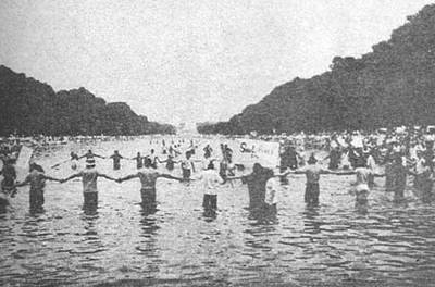 游行者在林肯纪念碑前面的倒影池里