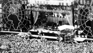 1985年7月13日,世界一百多位著名歌星分别在大西洋两岸的英国伦敦和美国费城举行国际性流行歌曲音乐会,为非洲灾民进行募捐。13日中午,音乐会首先在伦敦威姆布莱体育场开幕,72000多名听众出席了音乐会。两小时后,有九万人参加的在费城约翰·肯尼迪体育场举行的音乐会也宣布开始。音乐会将持续16小时。演出盛况将通过全球卫星网络向140多个国家播出。在两地音乐会分别休息期间,现场观众将通过巨大的电视屏幕观看对方的演出实况。音乐会的宗旨是“生存援助”。据音乐会的组织者说,这次音乐会为非洲灾民募集到7000万美元。