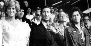 鲍勃·盖尔多夫在音乐会上同威尔士亲王和王妃在一起