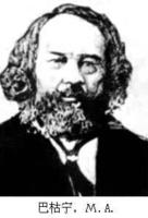 米哈伊尔·亚利山德罗维奇·巴枯宁(Михаил Александровйч Бакунин1814~1876)无政府主义者,出生于俄国贵族家庭,1840年出国,先后侨居德国、瑞士和法国,1849年因领导德国德累斯顿起义而被判死刑。1851年引渡回国,受长期拘禁和流放。1861年逃亡英国,1864年参加第一国际,后受蒲鲁东主义影响鼓吹无政府主义,主张依靠农民和流氓无产者自发暴动,在二十四小时内废除一切国家,建立个人“绝对自由”的无政府社会,反对任何纪律和权威,反对无产阶级革命和无产阶级专政,因进行派别活动,于1872年被开除出第一国际。