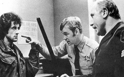 此后他又自编自演了《第一滴血》(《FirstBlood》1982)。后一部影片讲述了一人越战英雄回到祖国反而受到现代社会的嘲笑和排挤,甚至无故被打,而不得不进行反抗的惊险故事。这部影片再次轰动美国,成为当年十大巨片。史泰龙名利双收,并以洛奇和兰博两个形象而奠定了他银幕铁汉英雄的形象。而这两个影片中的人物风糜美国,成为强者的代名词,千百万青少年心目中的偶像。他的影片于80年代在中国上映同样引起轰动。