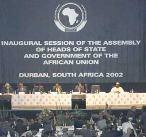 非洲联盟(非盟)第一届国家元首和政府首脑会议9日上午在南非中部海滨城市德班的国际会议中心开幕