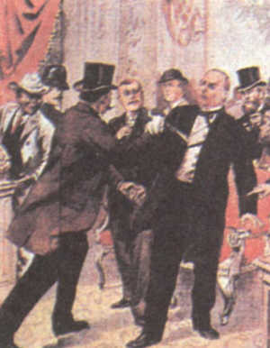 刺客佐尔戈兹把左轮手枪包在手帕里,在近距离朝麦金利胃部开了一枪